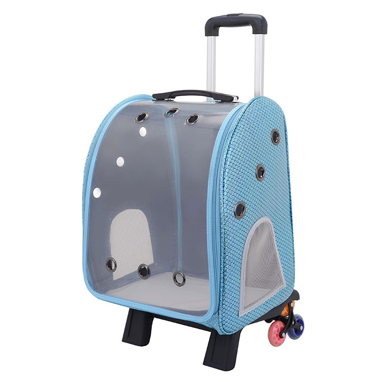 Menanggapi tren meningkatnya tur self-driving, operator hewan peliharaan yang dipasang di mobil telah muncul. Mereka memiliki pangkalan anti-slip dan perangkat pemasangan sabuk pengaman, memungkinkan mereka dipasang dengan aman di kursi mobil dan mencegah hewan peliharaan berlarian di dalam mobil selama pengereman tiba-tiba. Beberapa operator yang dipasang di mobil juga memiliki fungsi ekspansi, yang dapat dibuka untuk menciptakan ruang aktivitas yang lebih besar, memastikan hewan peliharaan dapat beristirahat dengan nyaman selama perjalanan panjang. Selain itu, pembawa ini mudah dibongkar dan bersih, secara efektif memecahkan masalah rambut hewan peliharaan dan noda yang tersisa di dalam. Mereka menawarkan solusi perjalanan hewan peliharaan yang bebas khawatir untuk pemilik mobil. Kami juga telah merancang kotak transportasi troli kucing peliharaan yang nyaman untuk bepergian. Desain ini memiliki roda untuk pengangkutan hewan peliharaan yang mudah. Ini memiliki ritsleting di tiga sisi, membuatnya mudah untuk dimasukkan dan mengambil hewan peliharaan masuk dan keluar dari kotak transportasi.